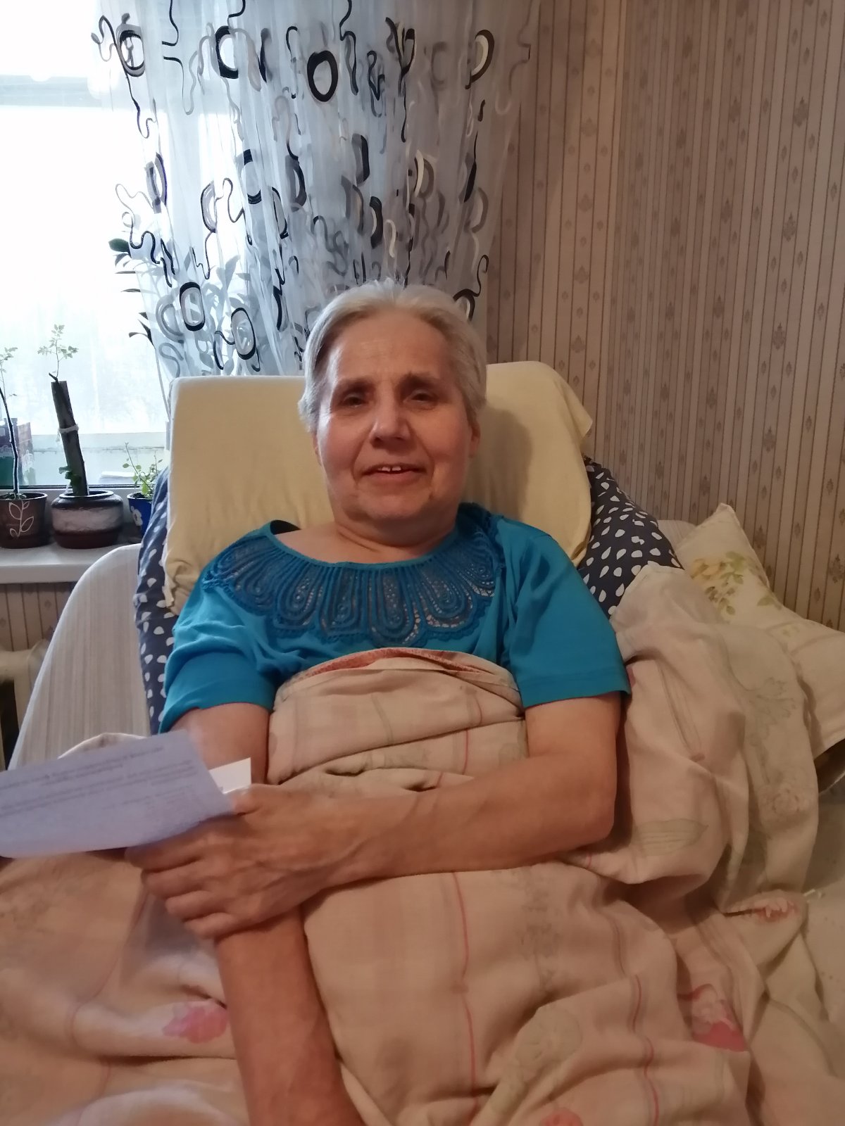 Королькова Валентина благодарит благотворительный Фонд “Жизнь” за внимание и подарок. Наша Валюша когда-то сама возглавляла городское общество инвалидов. Человек широкой души и доброго сердца. К сожалению, давно уже полностью прикована к постели. Мы её очень любим и уважаем за мужество и необычайное терпение.