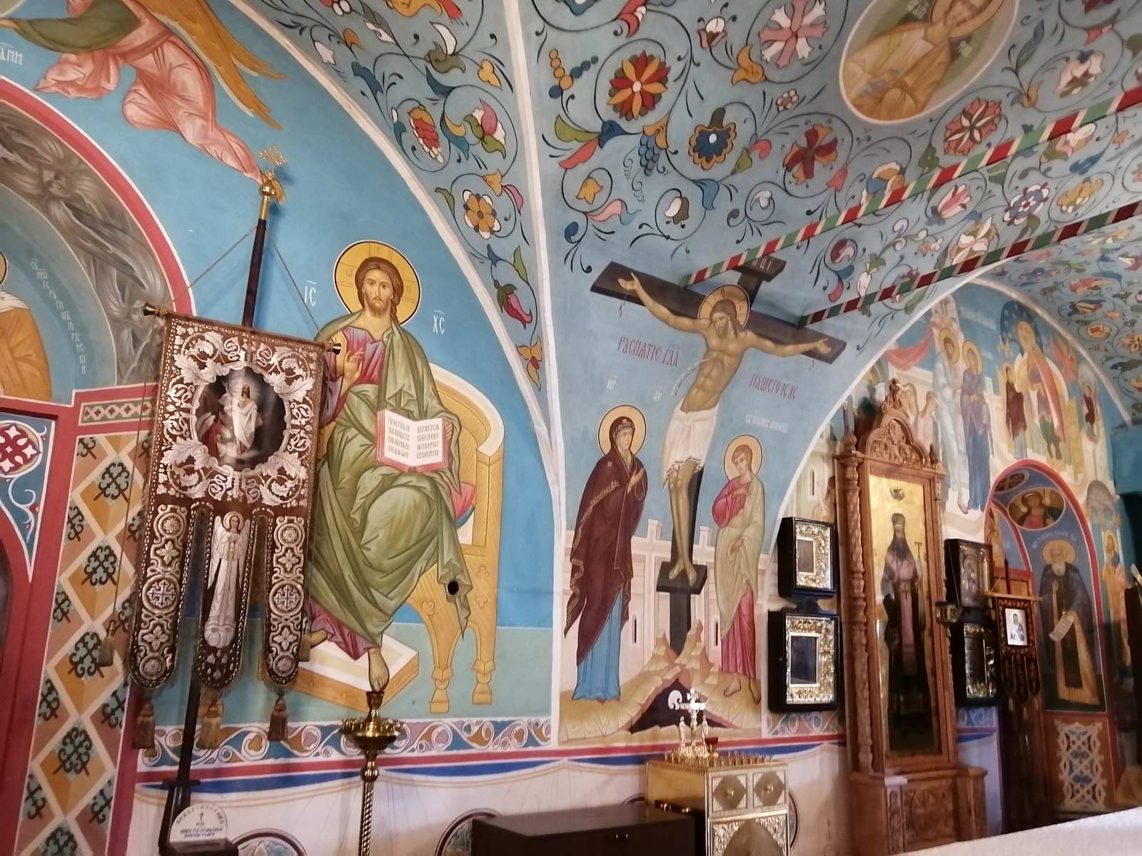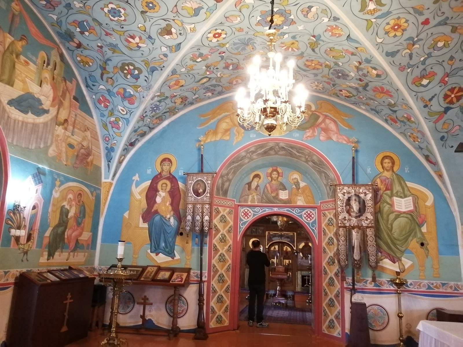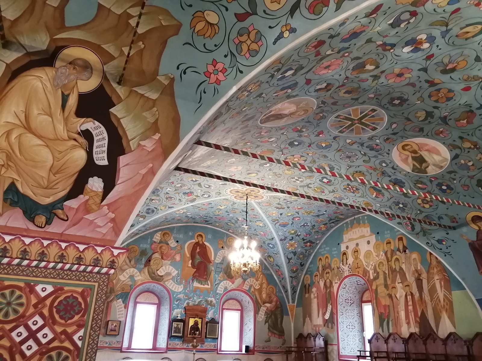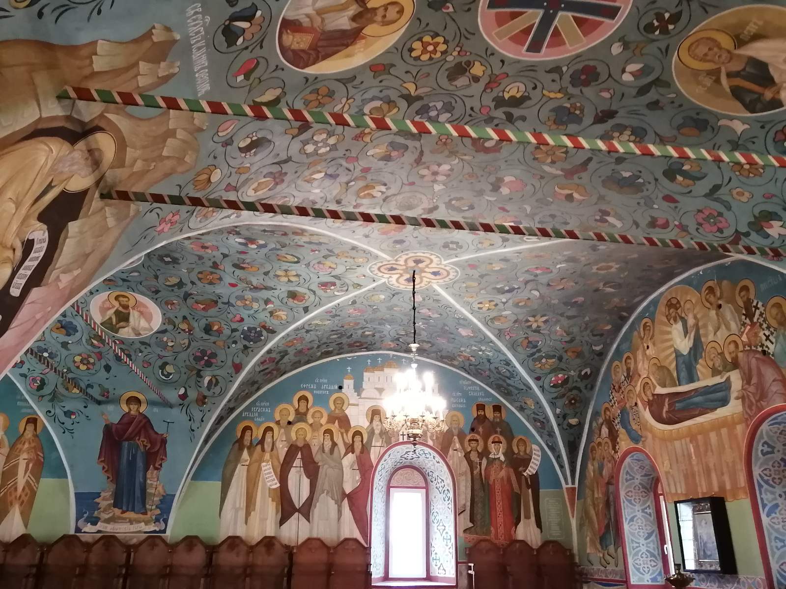 На всех фото ниже – церковь Введения во храм Пресвятой Богородицы. Трапезная палата вся в росписи. Красота, как в старорусских царских палатах…